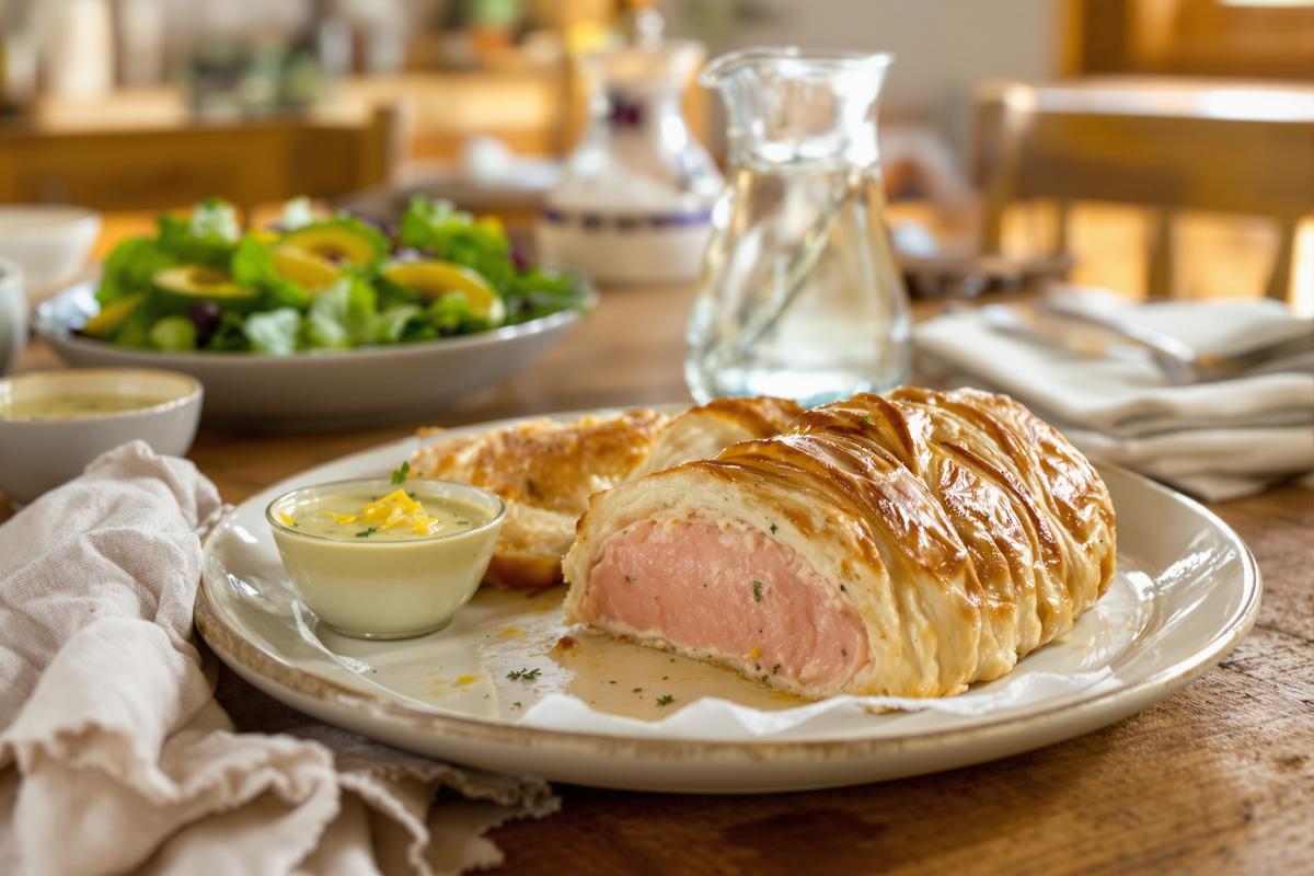 Que ce soit pour un dîner romantique, un repas de fête ou juste une envie de changer, ce saumon en croûte coche toutes les cases. Sa texture fondante, cette croûte dorée au croustillant parfait, et la sauce citronnée qui relève chaque bouchée… c’est un plat qu’on n’oublie pas.