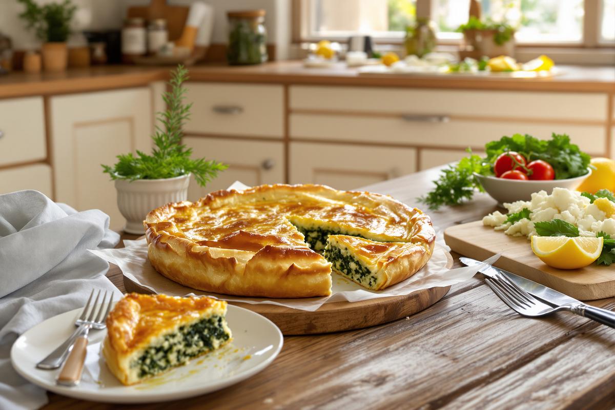 Une spanakopita bien réussie dépend surtout de l’humidité des épinards. Prenez vraiment le temps de bien les égoutter après cuisson. Pressez-les à la main ou dans un torchon propre pour éviter une pâte détrempée.