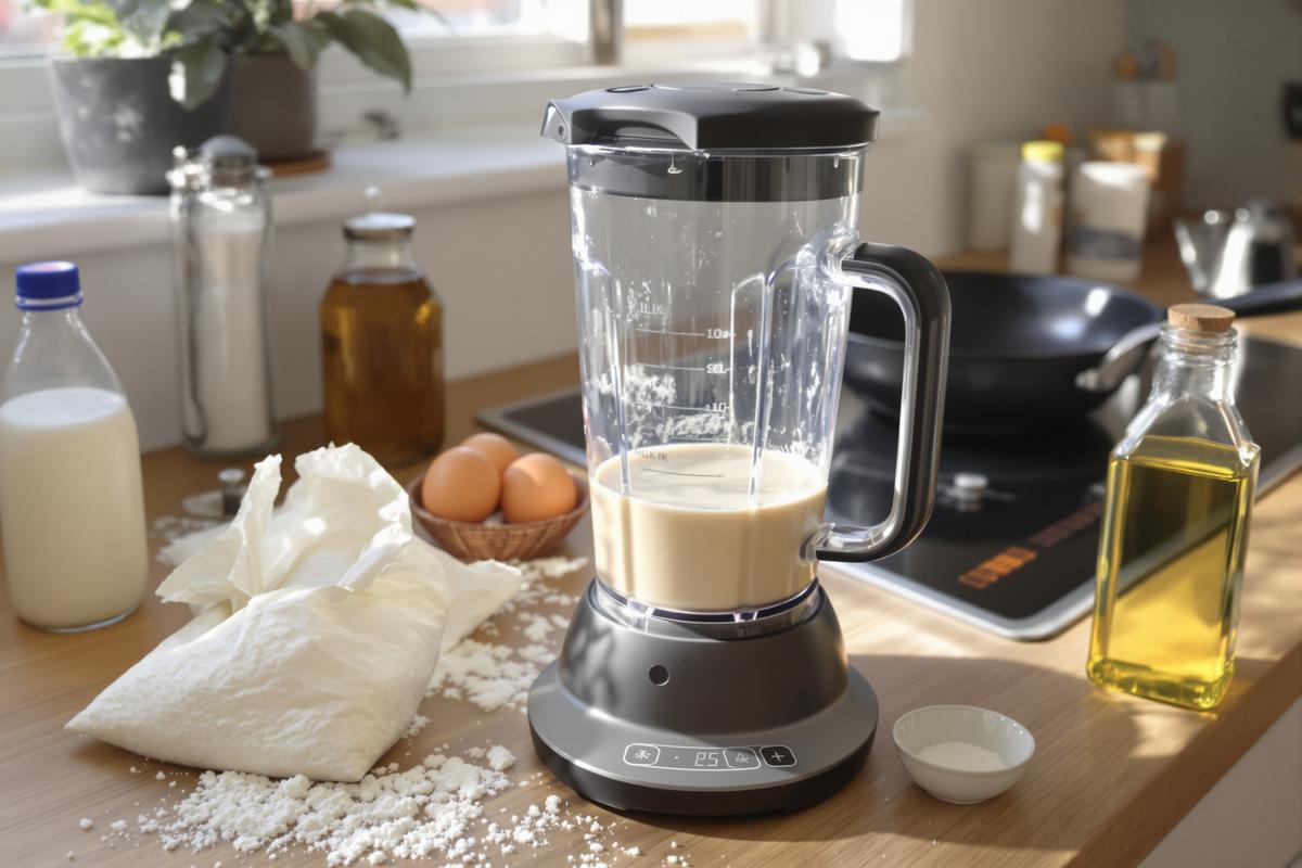 L’astuce ultime pour faire une pâte à crêpes en un clin d’œil ? Le mixer ou le blender ! Au lieu de verser petit à petit, on fait tout d’un coup.