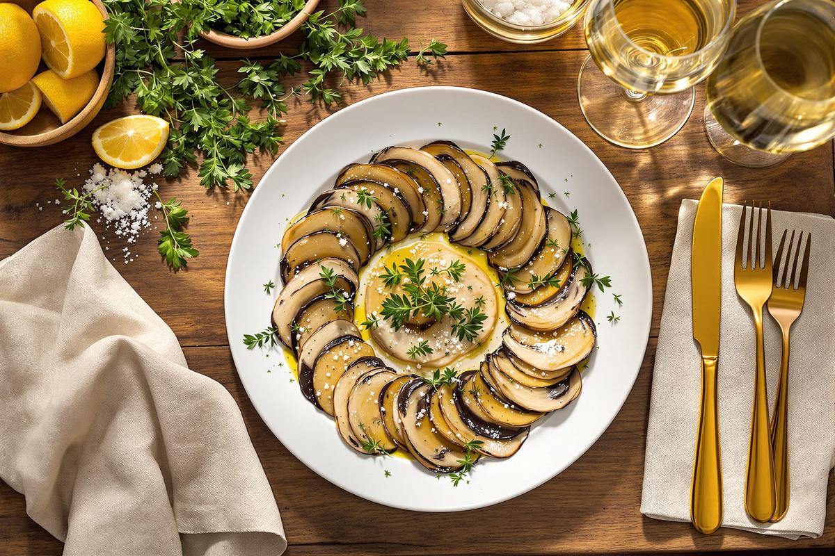 Le carpaccio de Portobello, c’est un peu comme une bonne surprise à l’apéro. Tu t’attends à quelque chose de classique, et tu découvres un truc nouveau, hyper bon, qui fait mouche à chaque fois. Pas besoin d’être vegan convaincu pour tomber amoureux de cette version.
